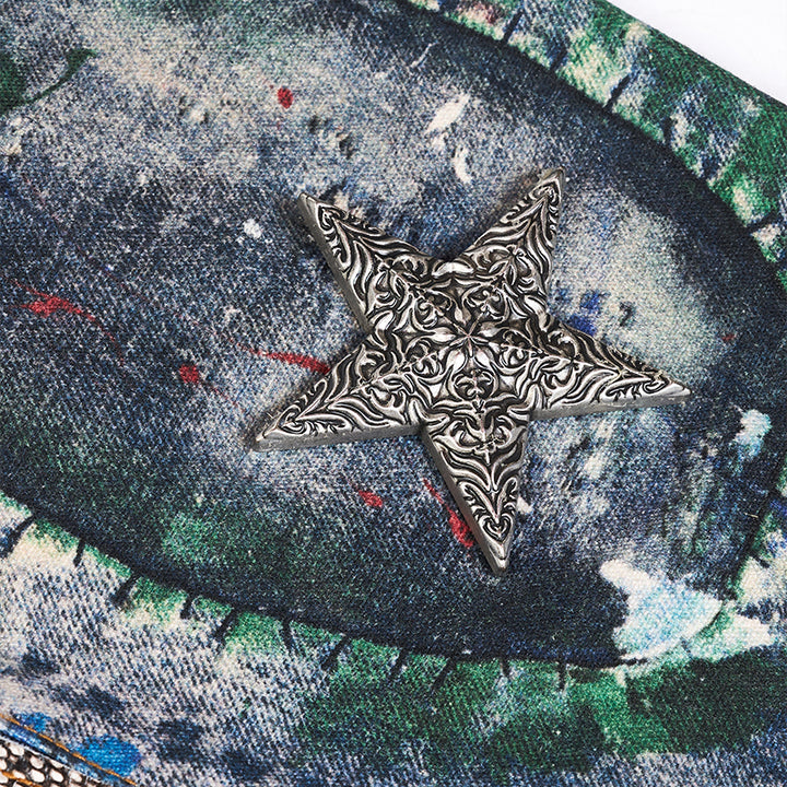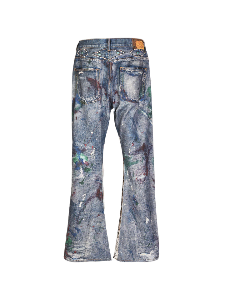 GLACIERBOY RAP STAR SERIES 3D Printed Snake Pattern Spliced Waxed Denim Jeans