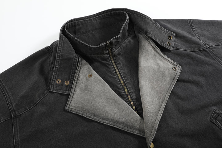 OaOO 'OVERLAPPING SHADOW' Deconstructed Denim Jacket with Stand Collar