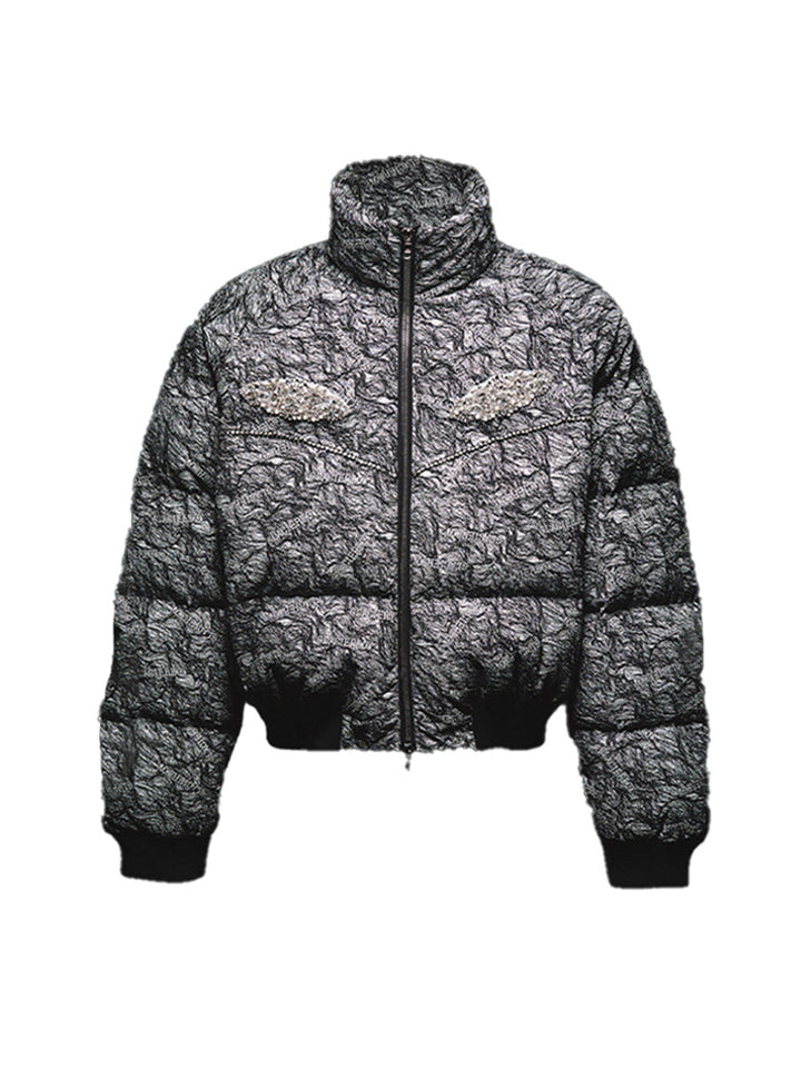 GLACIERBOY RAP STAR SERIES Hidden Pattern Rhinestone Down Jacket with 90% White Duck Down (300g)