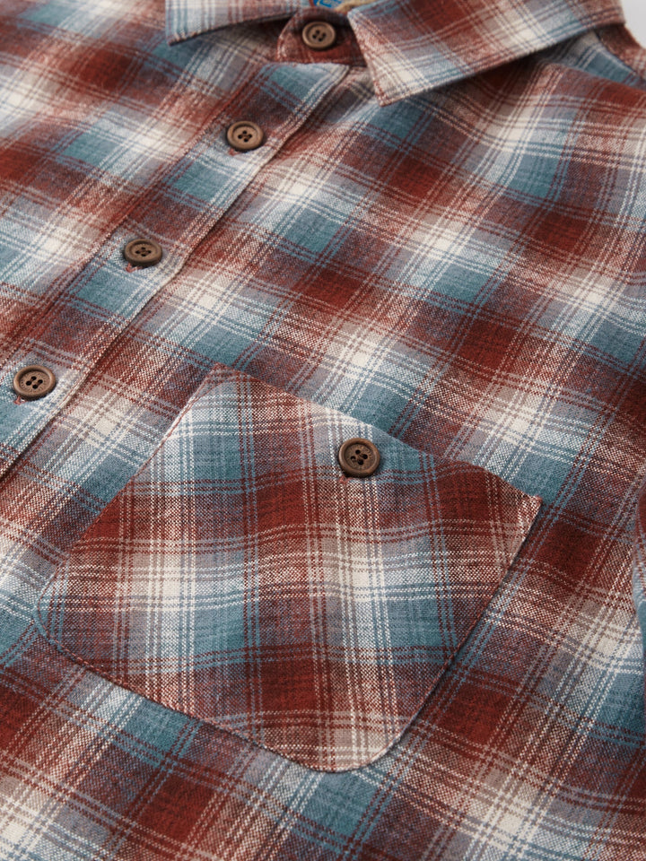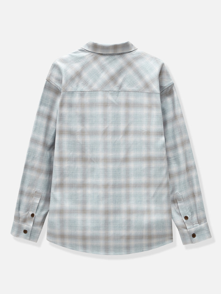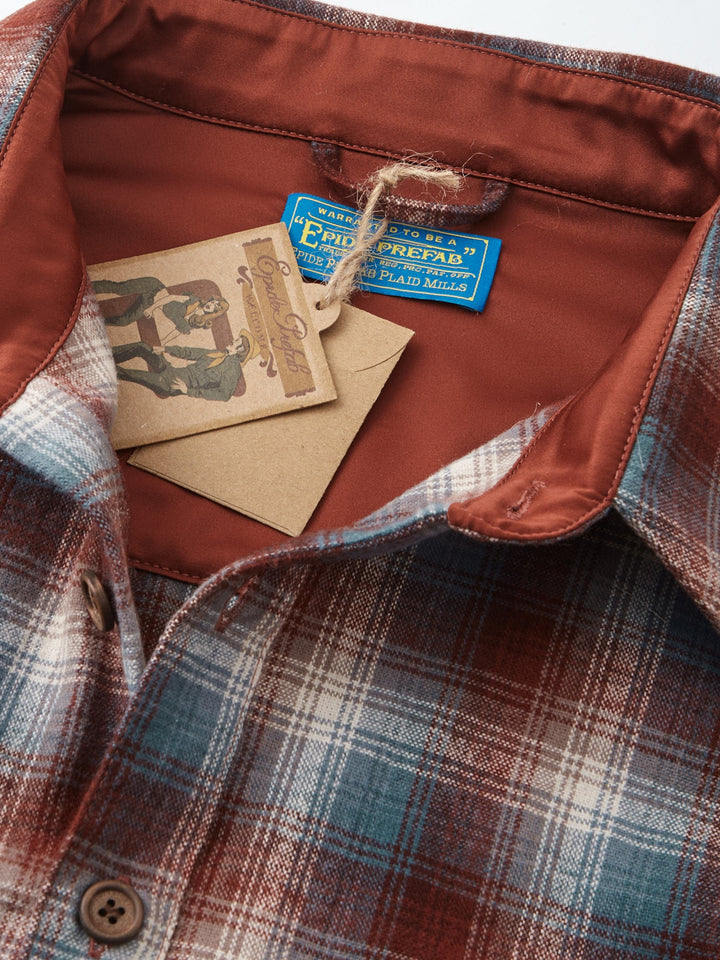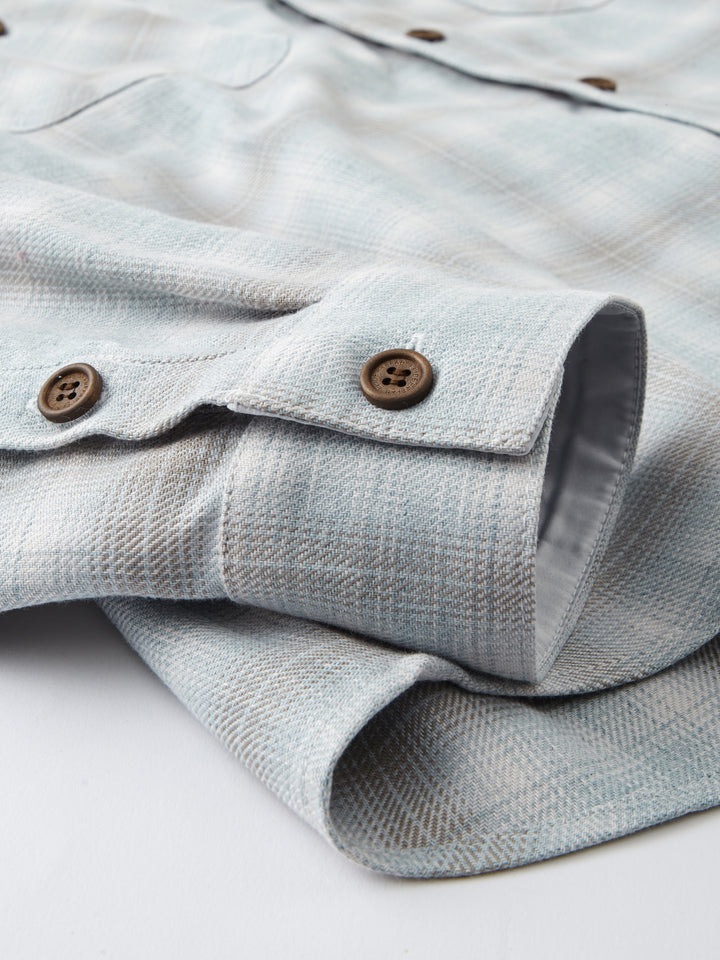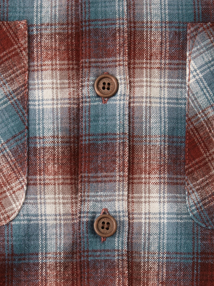 Epide Prefab Wooden Button Indigo-Dyed Vintage Plaid Patchwork Casual Shirt