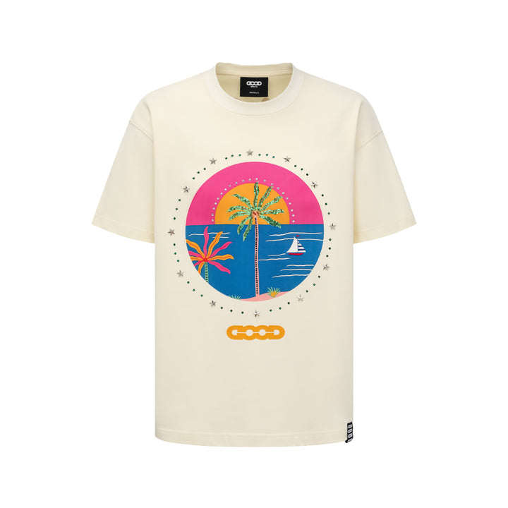 GOODBRAND Palm Tree Hotfix Rhinestone Script Slogan Tee