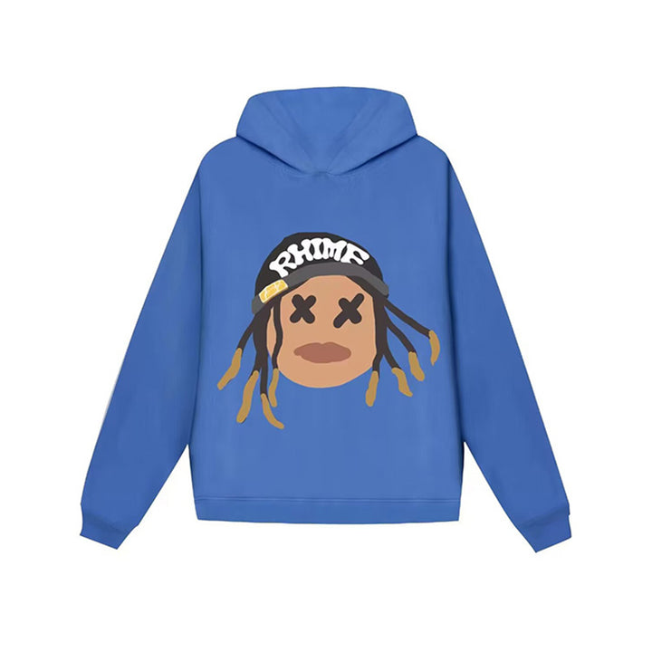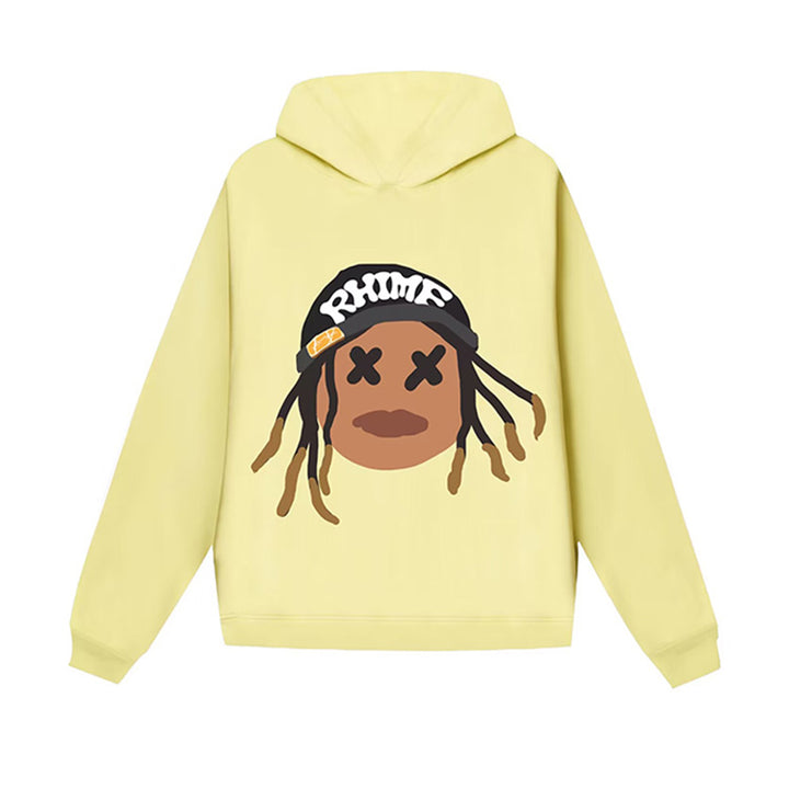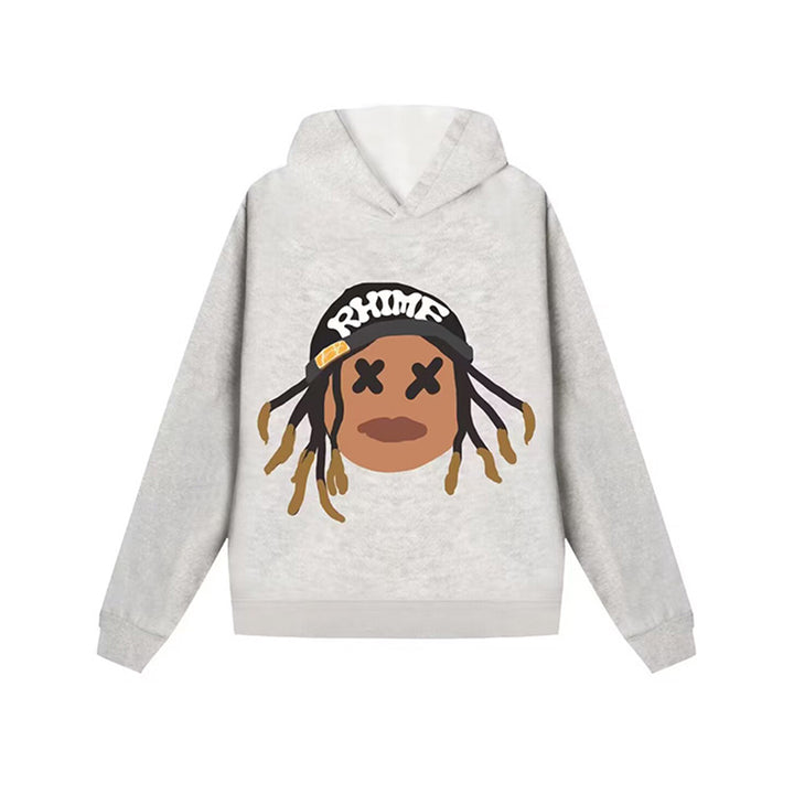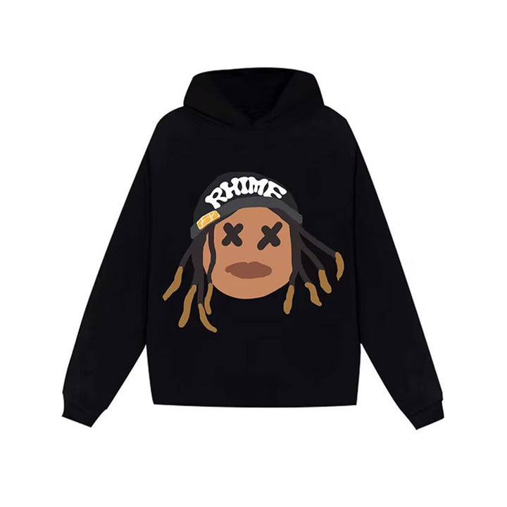 Rhime X 24KGoldn photo booth shoot with dreadlocks and hoodie