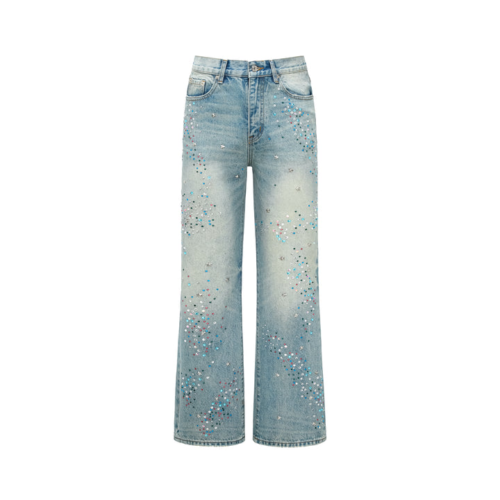 GOODBRAND 2024F/W Broken Rhinestone Pink Dot Denim Pants