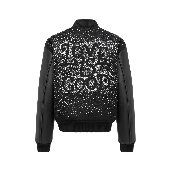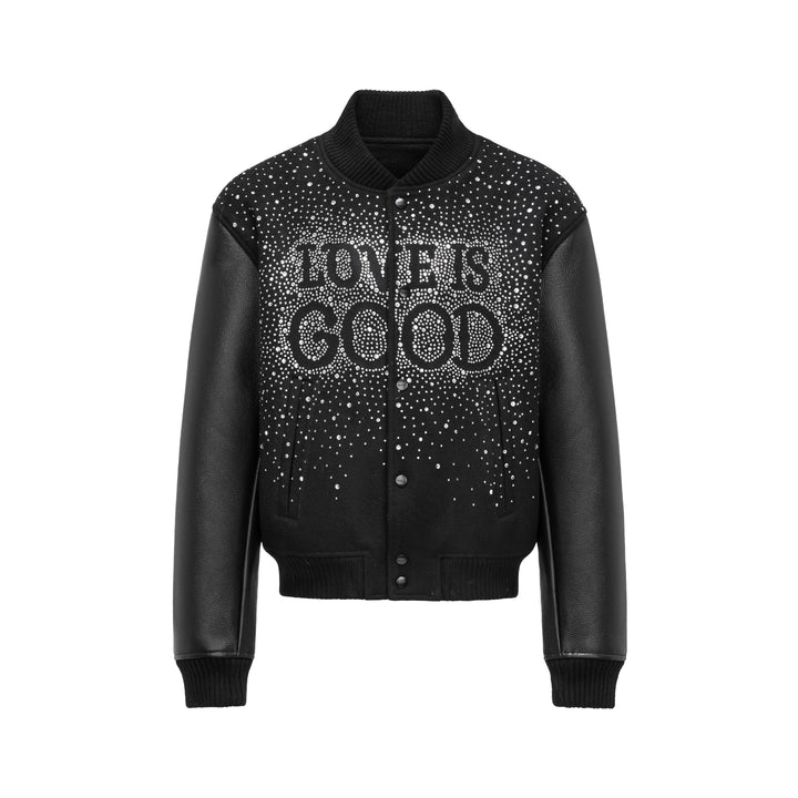 GOODBRAND 2024F/W LOVE IS GOOD Starry Rhinestone Patchwork Leather Baseball Jacket
